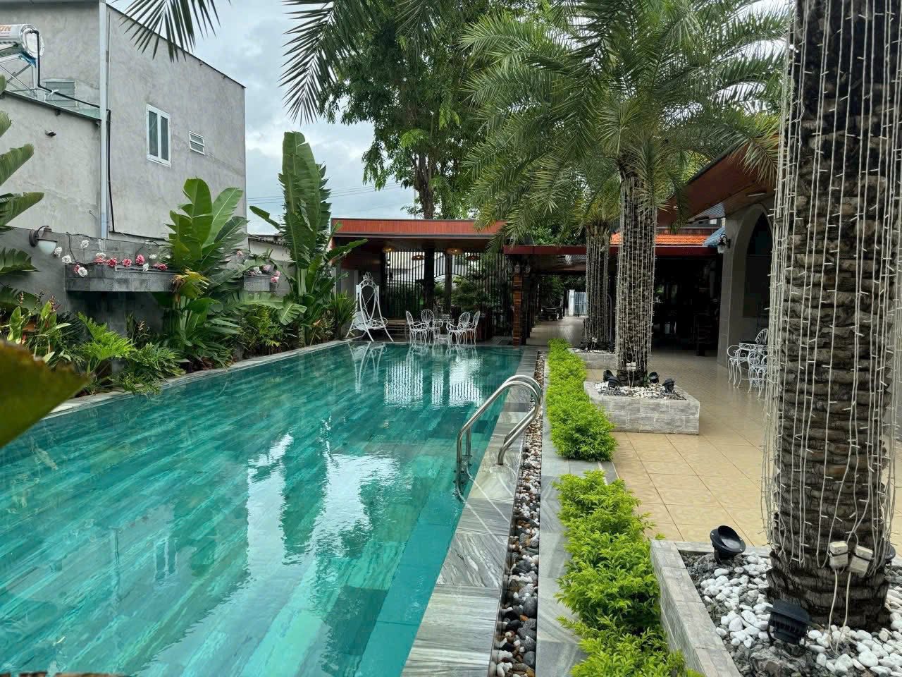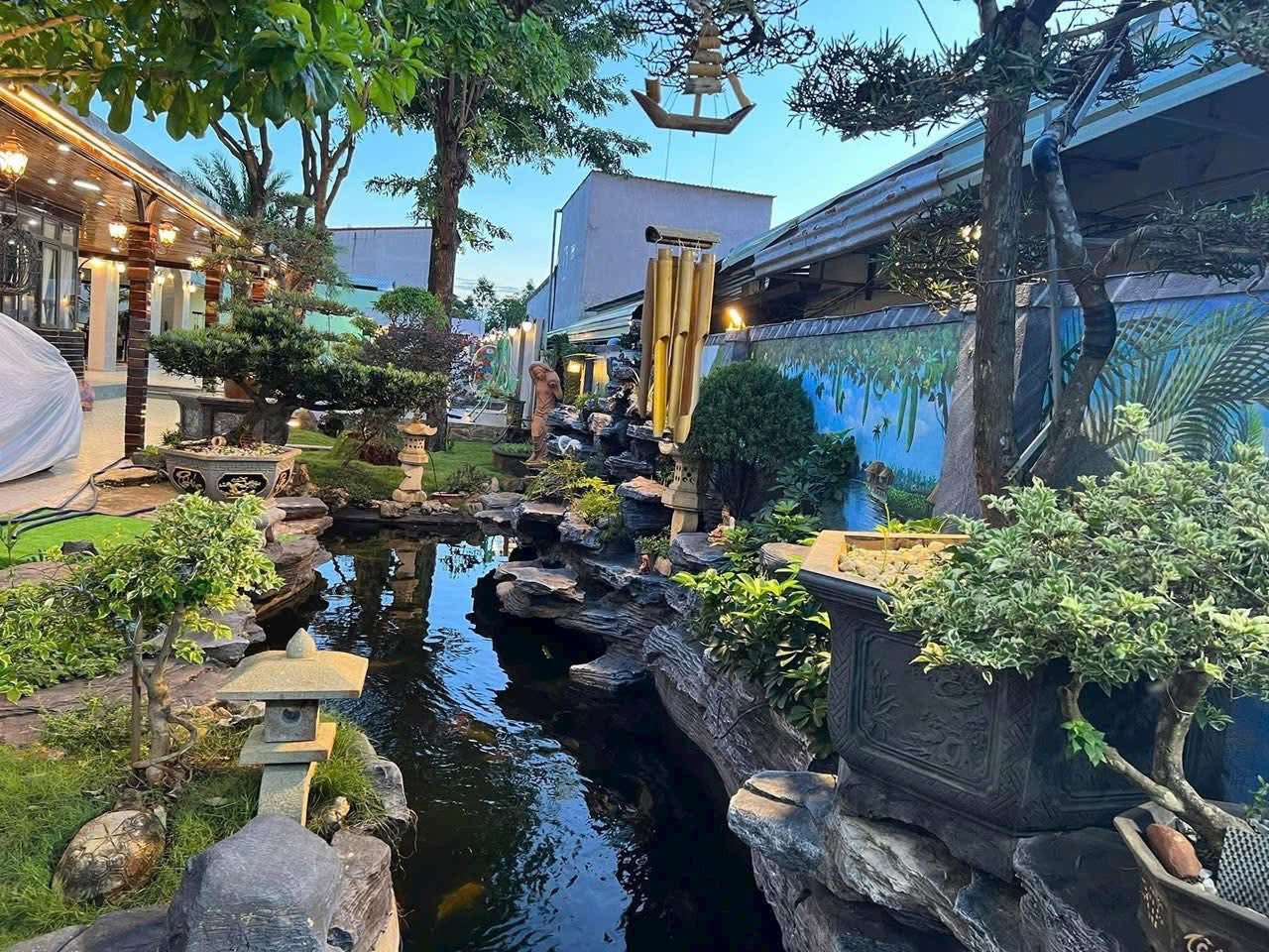 Biệt thự được xây dựng với không gian nhà gỗ cao cấp và tiểu cảnh bài bản, mang đến không gian nghỉ dưỡng tuyệt vời.