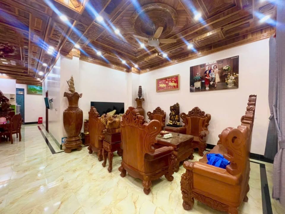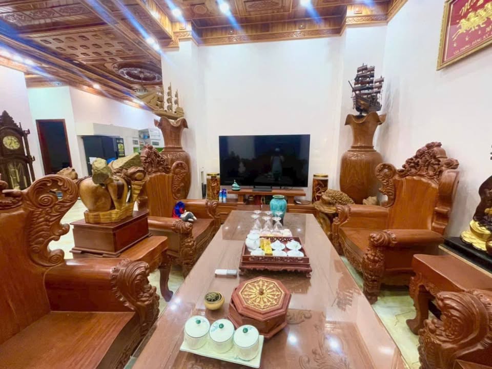 Nội thất gỗ đỏ cao cấp, được chủ nhân gìn giữ và tặng lại toàn bộ, tạo nên một không gian sống đầy dấu ấn cá nhân và sự sang trọng.