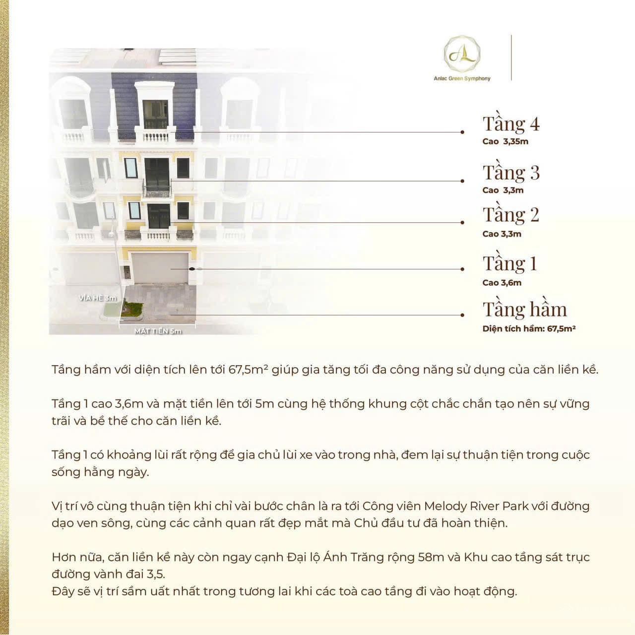 Liền kề có hầm bán tại An Lạc Green Symphony, Vân Canh, Hoài Đức, Hà Nội, với thiết kế hiện đại và không gian sống lý tưởng.