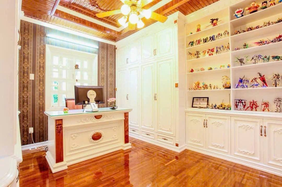 Công năng gồm 9 phòng ngủ, 2 phòng khách, 2 phòng thờ, bếp và quầy bar, WC cao cấp có bồn tắm nằm. Tầng trệt riêng biệt để kinh doanh, trước đây từng có khách trả 100 triệu/tháng.