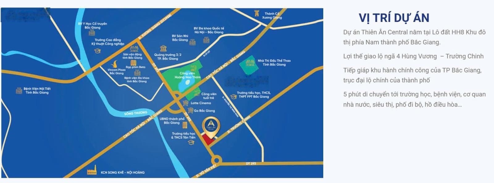 Thiên ân tọa lại tại vị trí đắc địa: Ngay ngã tư giao nhau giữ 2 trục đướng lớn huyết mạch của TP Bắc Giang: