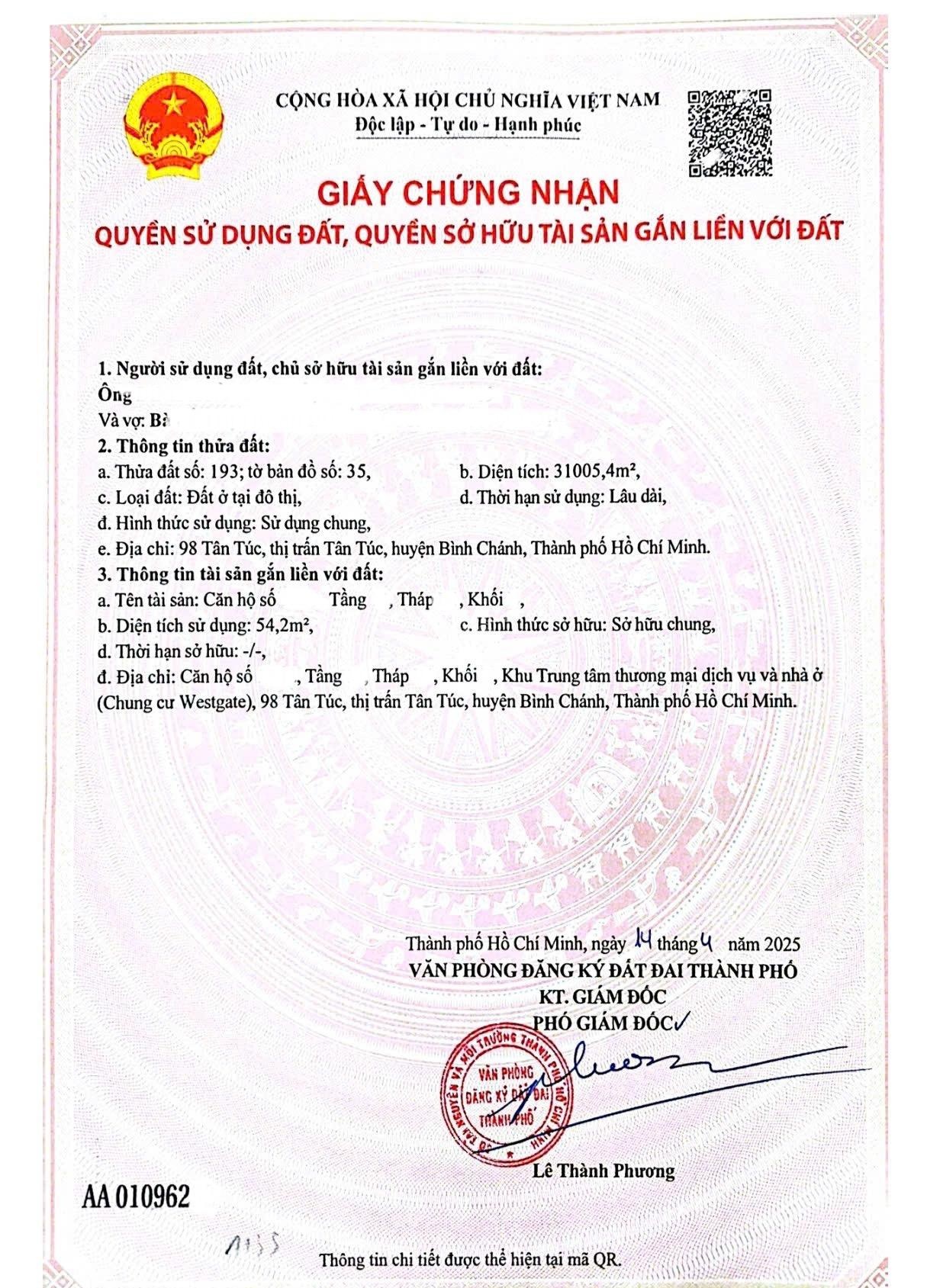 Bán căn 59m² + view ngoại khu thoáng mát + đã có sổ hồng + tầng trung + có hỗ trợ khách vay ngân hàng. - Giá bán: 2.650 tỷ (102% đã bao gồm sổ thuế phí). - Diện tích: 59m² (2PN - 2WC). - Ban công hướng Đông Nam mát mẻ. - Sổ hồng sẵn chủ không vay ngân hàng. - Tầng trung, đẹp. - Hỗ trợ vay tất cả các Ngân hàng. - Nhận nhà ở ngay được ạ. LH em Trâm: 0369419633call/zalo) hỗ trợ tư vấn và xem nhà. Tiện ích: - Hồ bơi, gym, yoga, xông hơi, phòng karaoke, nhà banh, bóng rổ, bóng chuyền, tennis,... - Siêu thị, ngân hàng, chợ dân sinh,... - Trường học cấp 1, 2, 3, Đại học Văn Hiến, Kinh Tế, Phạm Ngọc Thạch. - Bệnh viện Bình Chánh, Nhi Đồng 3. - GS25, Strafood, Winmart, Vinmart, Family mart, tiệm thuốc tây, nhà hàng,... - Được nuôi thú cưng. - Hầm để xe rộng rãi. - Ban quản lý CBRE.