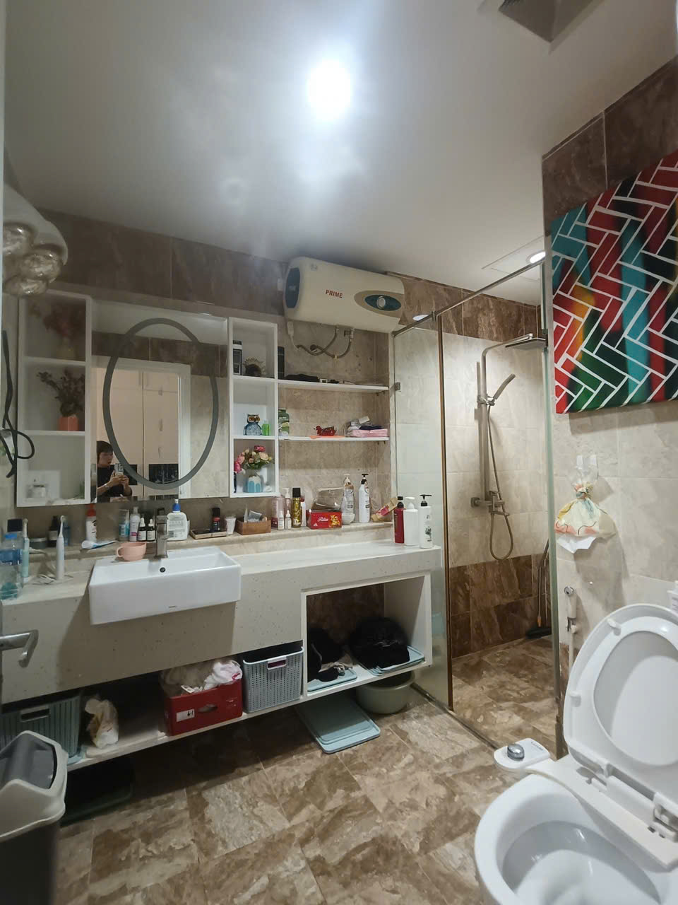 Diện tích 100m2, thiết kế 3 phòng ngủ, 2 nhà vệ sinh, có ban công, phòng khách và bếp.