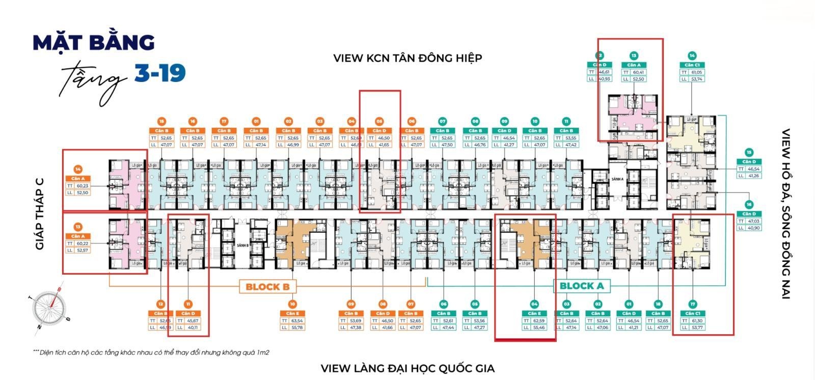 - Căn Góc số 13,14,17 diện tích 61 m2 tầng 10-15, 20-27 giá dự kiến ~1,89 Tỷ