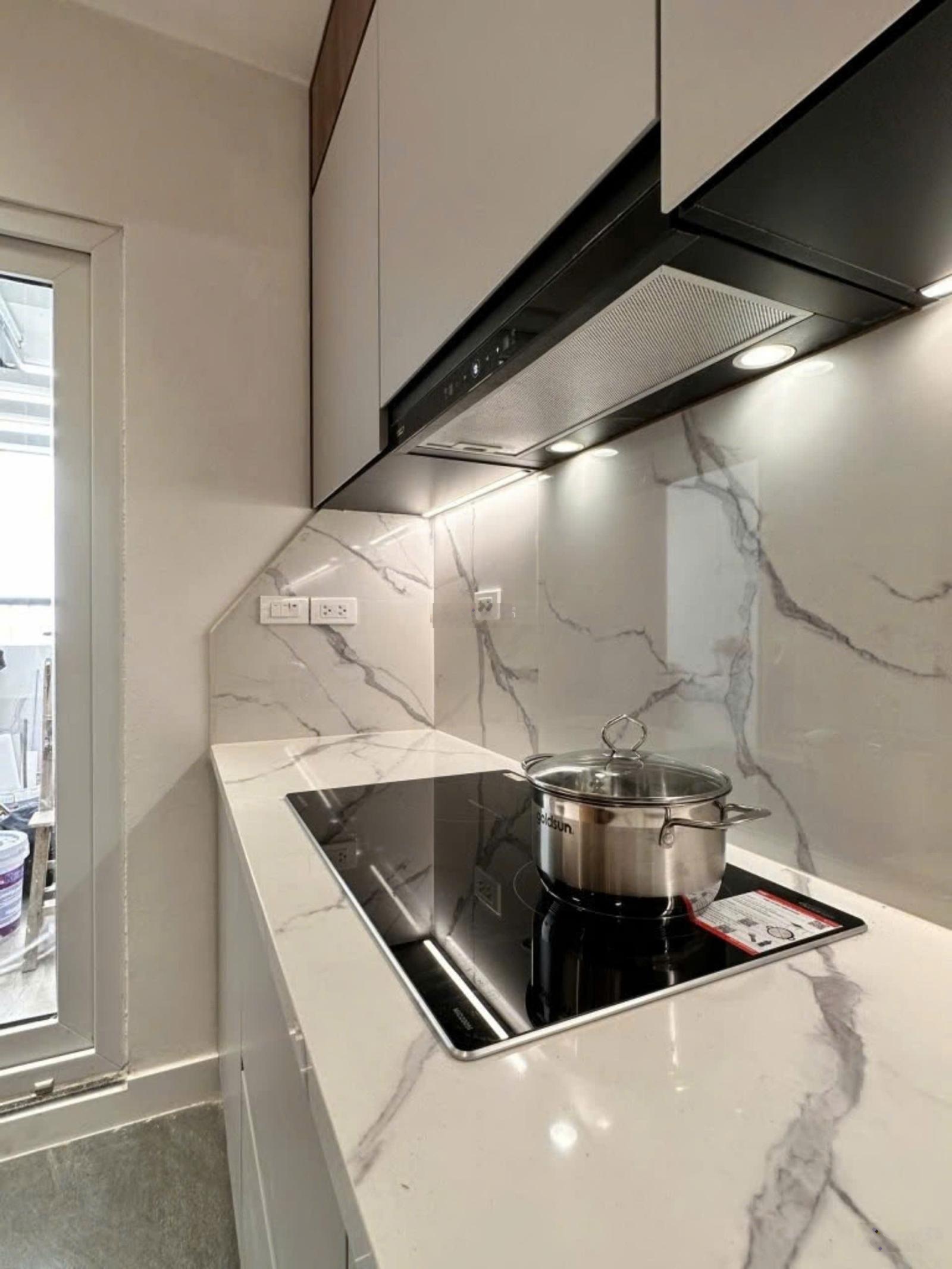 + Bếp: Chậu rưa sơn hà, cam kết 100% inox304, vòi rưa bát Đồng, Nikel, Crom. Bếp từ và hút mùi Chef, toàn bộ cảm ứng, rất êm. Phụ Kiện giá xoong nồi dao thớt gia vị Euro gold, giá bát nâng hạ tay nâng Blum, bản lề Hafele.