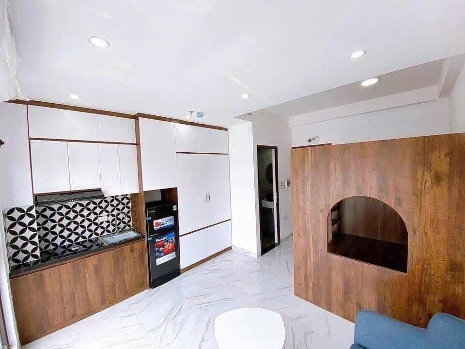 Tòa nhà mới xây đẹp lung linh, thiết kế hiện đại 7 tầng thang máy, thoáng trước sau, bao gồm 11 căn hộ cao cấp khép kín, trang bị nội thất xịn sò.