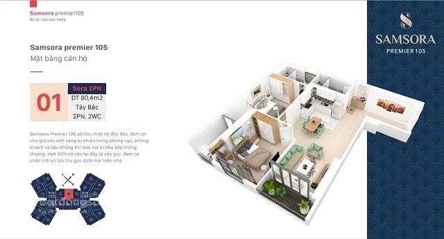 Căn hộ chung cư tại Samsora Premier, Chu Văn An, Quang Trung, Hà Đông, Hà Nội, có diện tích 81m2, 2 phòng ngủ và 2 phòng tắm. Pháp lý đầy đủ, nội thất đầy đủ với điều hòa, giường, tủ lạnh.