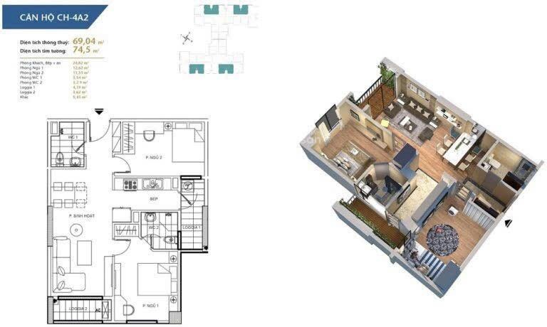 Căn hộ 69m2 hướng Đông Nam tại Hà Nội Homeland - Sẵn sàng đón bạn về nhà mới