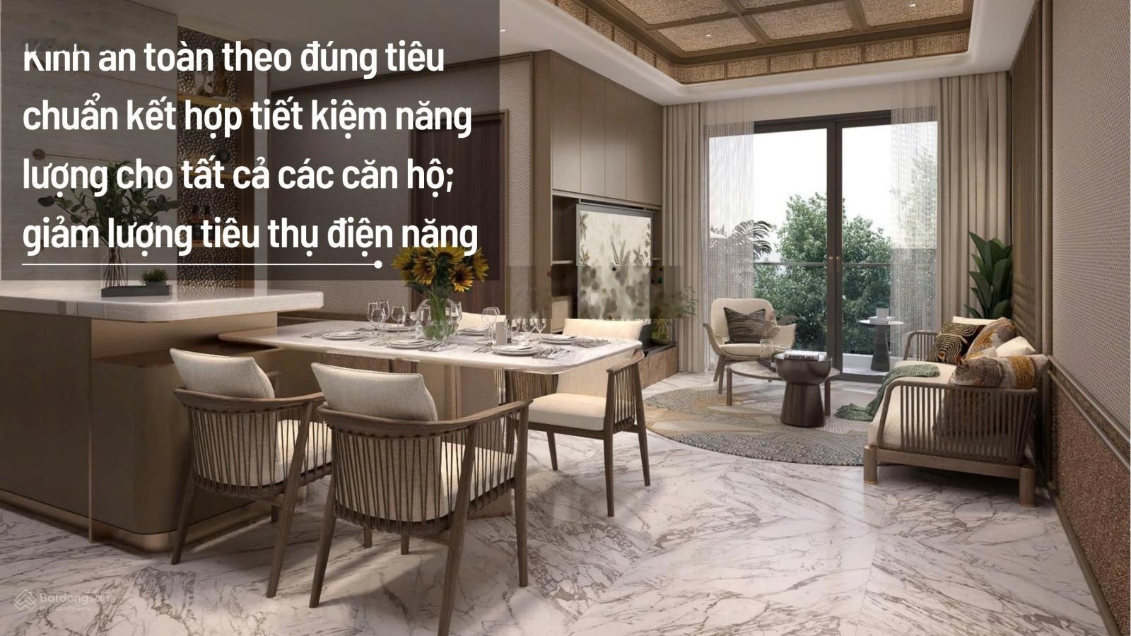 - Bàn giao hoàn thiện cao cấp: Sơn thân thiện môi trường, kính cách âm, thiết bị vệ sinh Toto, bếp Hafele.