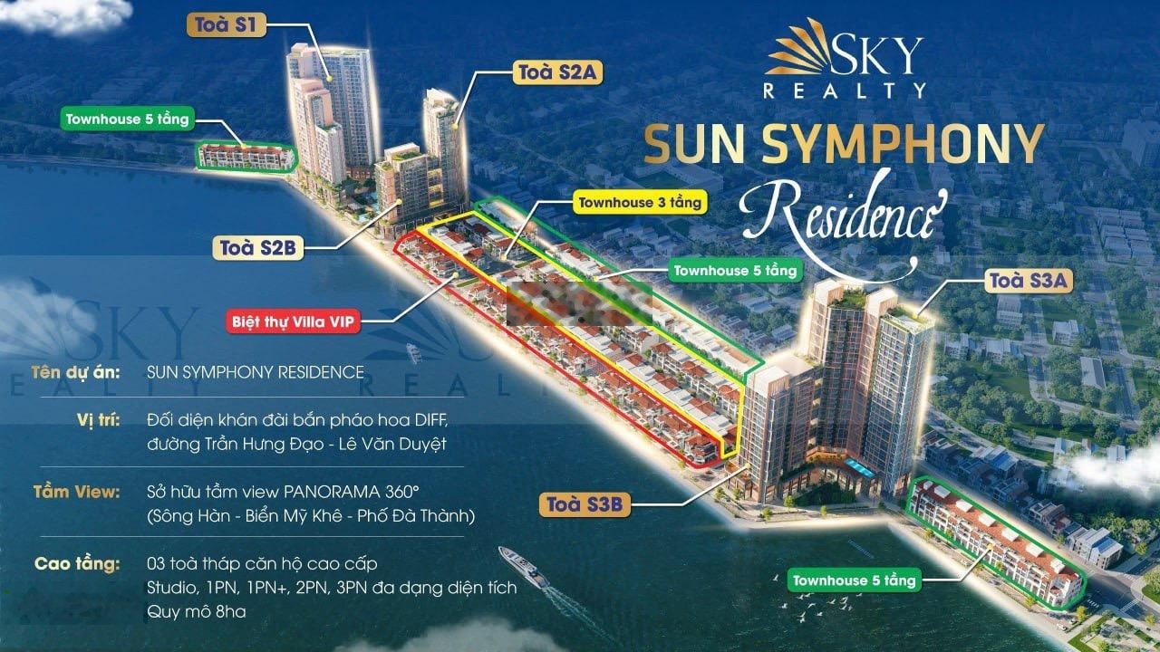 Thông tin mô tả. Siêu phẩm 3 tòa tháp căn hộ S1 S2 S3 căn hộ Sun Symphony Residence Da Nang - tuyệt tác bên bờ sông Hàn. - Toạ lạc ngay vị trí độc tôn trên cung đường Trần Hưng Đạo, trực diện sông Hàn, đối diện điểm bắn pháo hoa Quốc tế. - Vị trí ngắm pháo hoa đẹp nhất trên sông Hàn, view Biển, thành phố, cầu xoay sông Hàn. - Pháp lý chuẩn chỉnh: Sổ hồng lâu dài. - Khách hàng nước ngoài được sở hữu. - Thanh toán theo tiến độ, Ngân hàng hỗ trợ vay 70%, 0% lãi suất lên đến 30 tháng. - Liên hệ ngay quản lý dự án từ CĐT Sun Group 0932677621 để nhận được hỗ trợ và chính sách. ------------------------------------------- - Quỹ độc quyền căn đẹp. - Tặng vé xem pháo hoa quốc tế khán đài VIP. - Giá tốt trên thị trường. - Chiết khấu trong tháng lên đến 16%. - Miễn phí 3 năm phí vận hành. ---------------------------------------- Loại hình căn hộ. + Căn 3 phòng ngủ diện tích 88m2, 90m2, 100m2 vốn ban đầu chỉ từ 2 tỷ (30%). + Căn DF diện tích 1 sàn 100m2, 110m2. Liên hệ ngay quản lý dự án từ CĐT Sun Group.