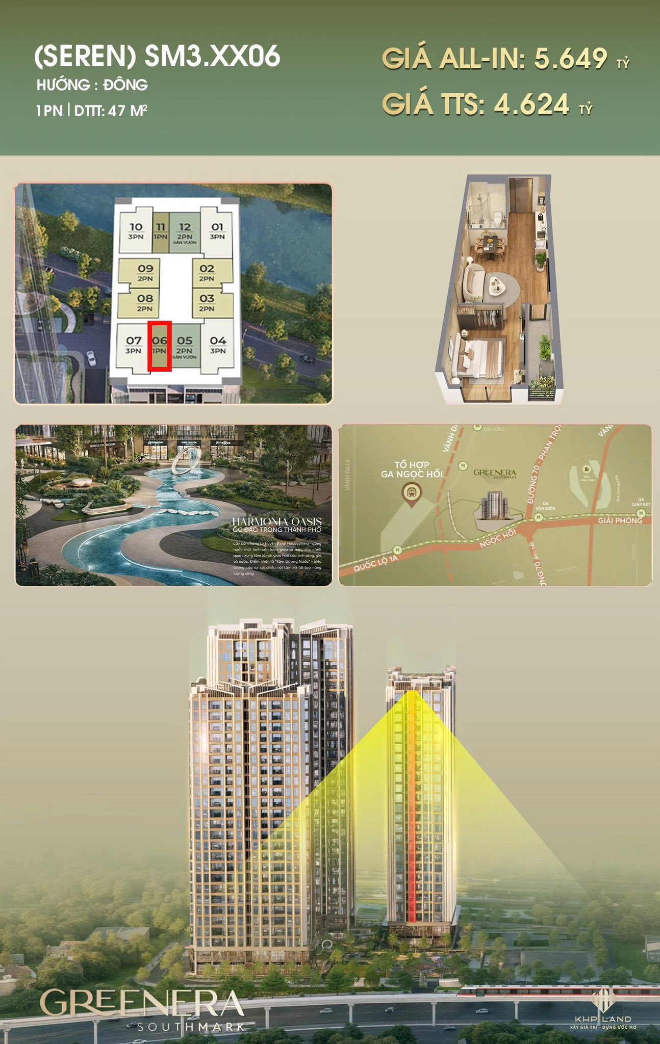 Mở bán hai căn hộ 1 phòng ngủ tại trục 06, tòa SM3 dự án Greenera Southmark, Huyện Thanh Trì, Thành phố Hà Nội.