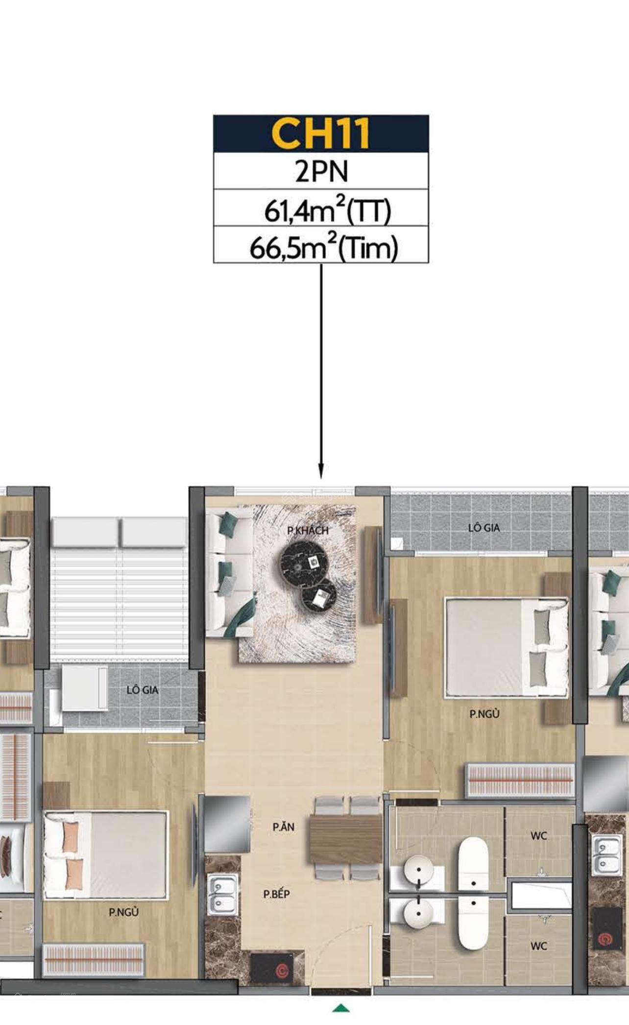 Diện tích: 66,5m² - Hướng: Tây Bắc.