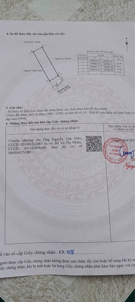 Bán đất hướng Đông Nam tại Lương Quán, Nam Sơn, An Dương, Hải Phòng