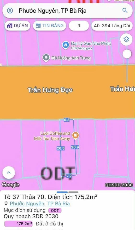 Đất mặt tiền Hương Lộ 2, Bà Rịa, 6,2 tỷ sở hữu ngay 608m² đất vàng