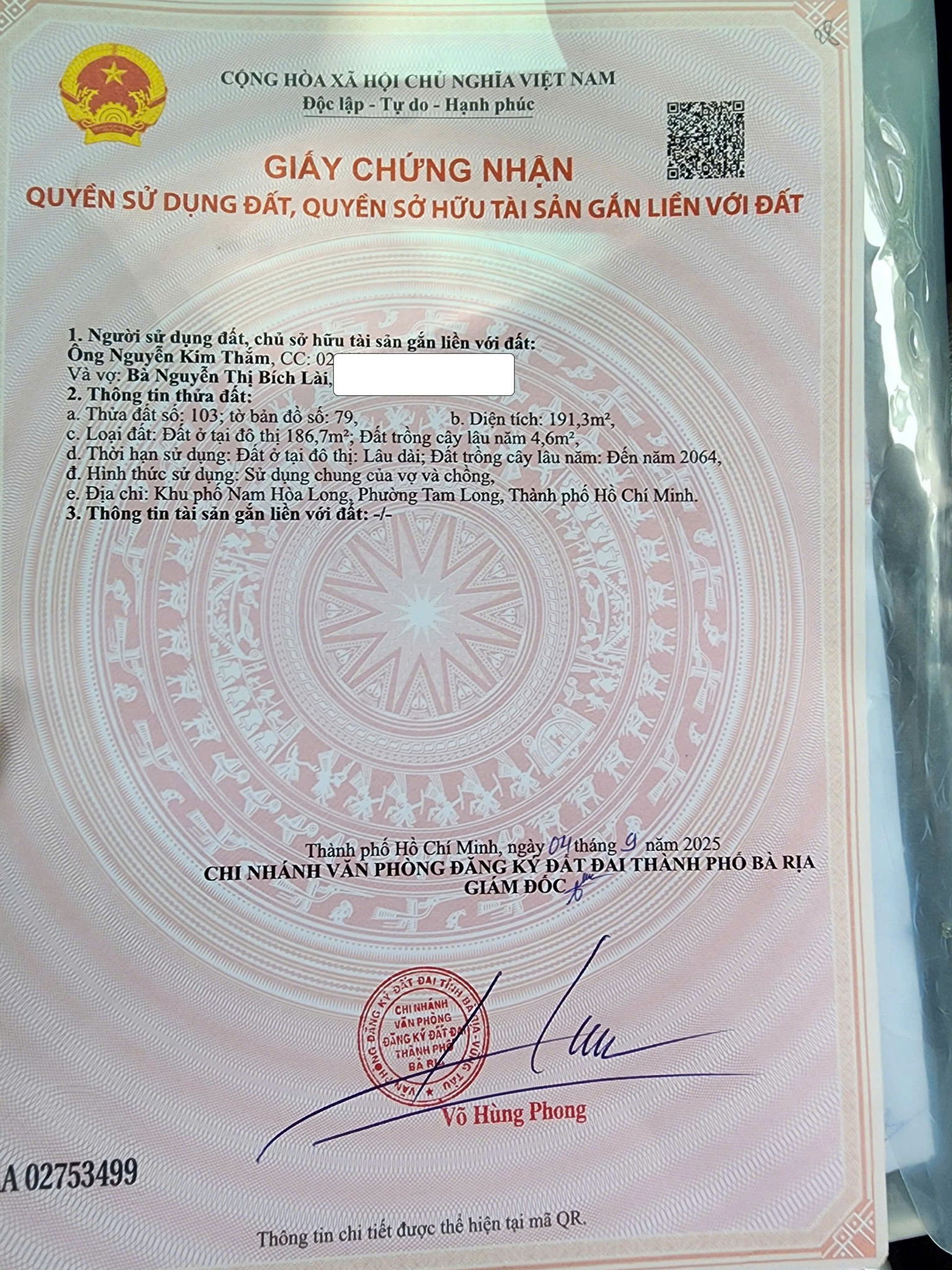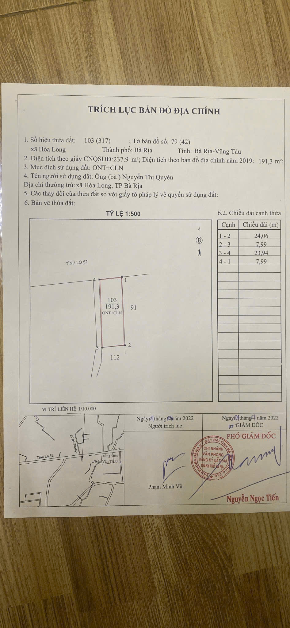 Kính mời quý vị đến chiêm ngưỡng mảnh đất thổ cư diện tích 191.3m2 (8m x 24m) tại Hòa Long, thành phố Bà Rịa.