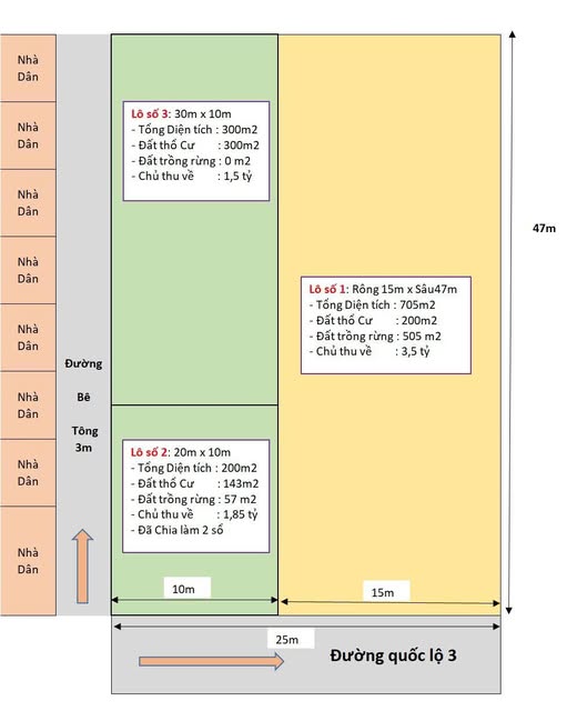 Diện tích siêu khủng: 1200 mét vuông, trong đó có 643 mét vuông đất thổ cư, xây dựng thoải mái.