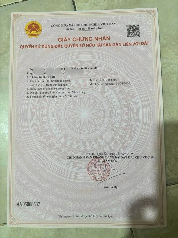 Diện tích khủng lên đến 1.500m², trong đó có 300m² đất thổ cư đã được quy hoạch đất ở