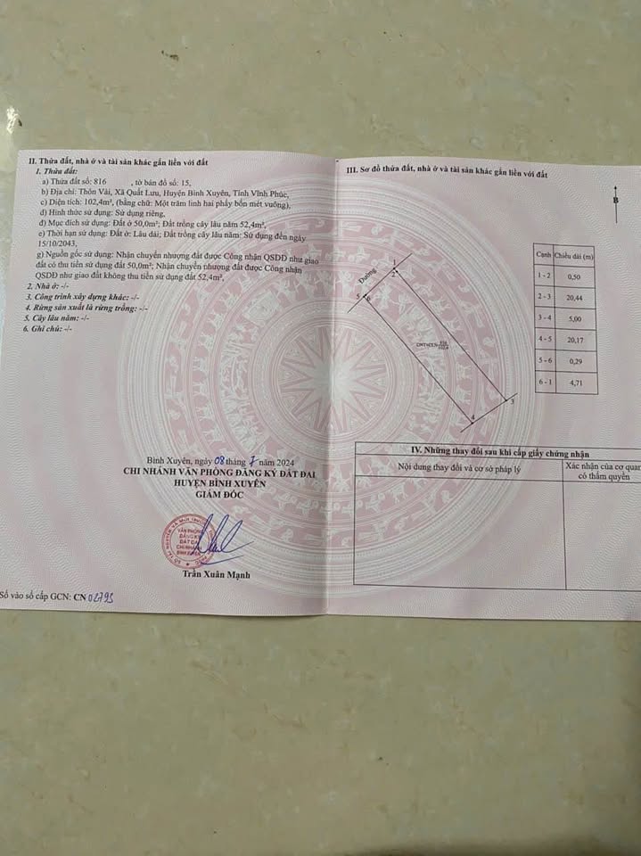Bán gấp lô đất siêu đẹp tại Thôn Vải, xã Quất Lưu, huyện Bình Xuyên, tỉnh Vĩnh Phúc.