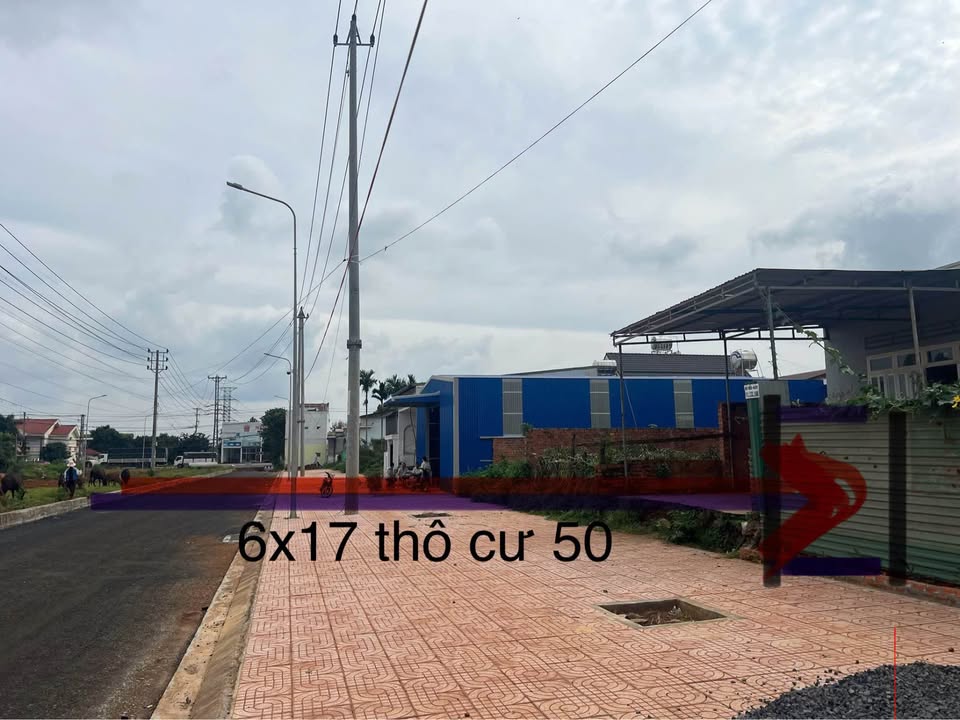 Lô 1: Diện tích 6m x 17m, thổ cư 50m², chỉ 4.2 tỷ. Sở hữu mặt tiền đường nhựa 37m siêu rộng, là trục chính đắc địa vào khu đấu giá TDP 12.