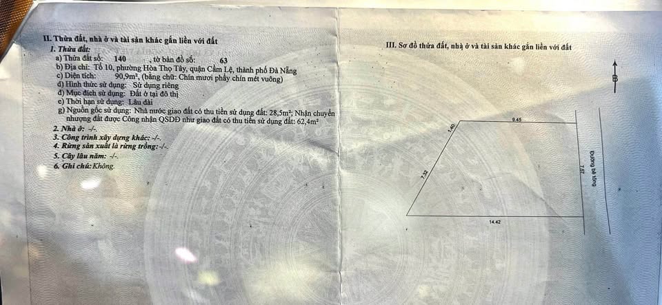Cơ hội sở hữu ngay lô đất kiệt đường Cầu Đỏ, Cẩm Lệ, Đà Nẵng với diện tích 115m2