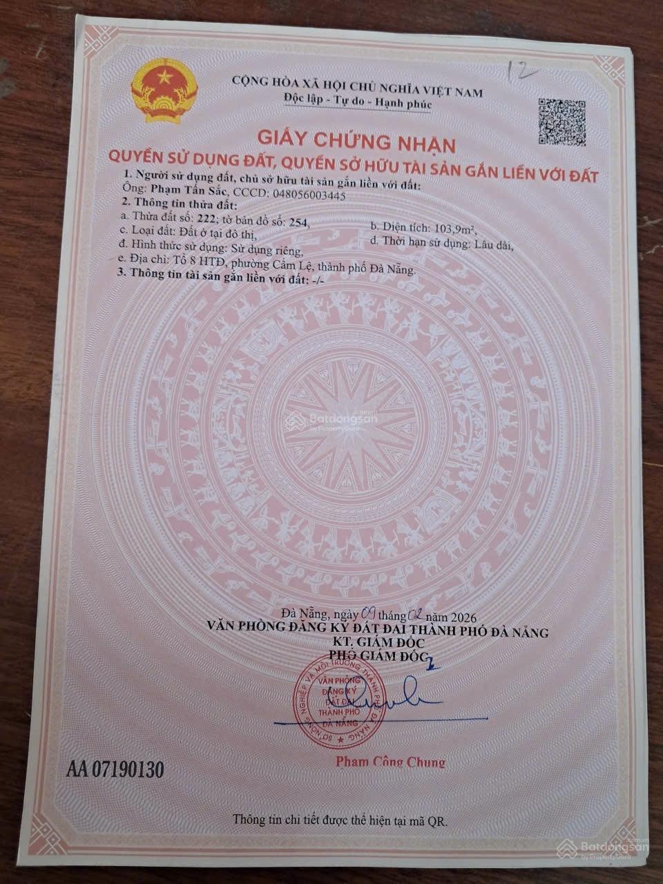Bán đất 101m² kiệt ô tô 5m Trần Đình Nam, Đà Nẵng - Sổ hồng sẵn sàng