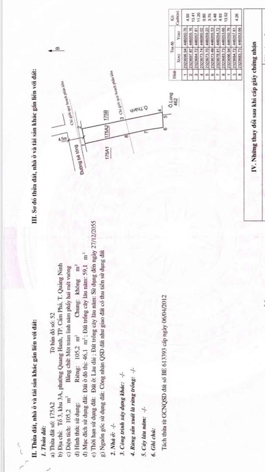 Bán đất thổ cư 90.7m2 khu Quang Trung, Cẩm Phả, mặt tiền 5m, đường ô tô thông, giá 1 tỷ
