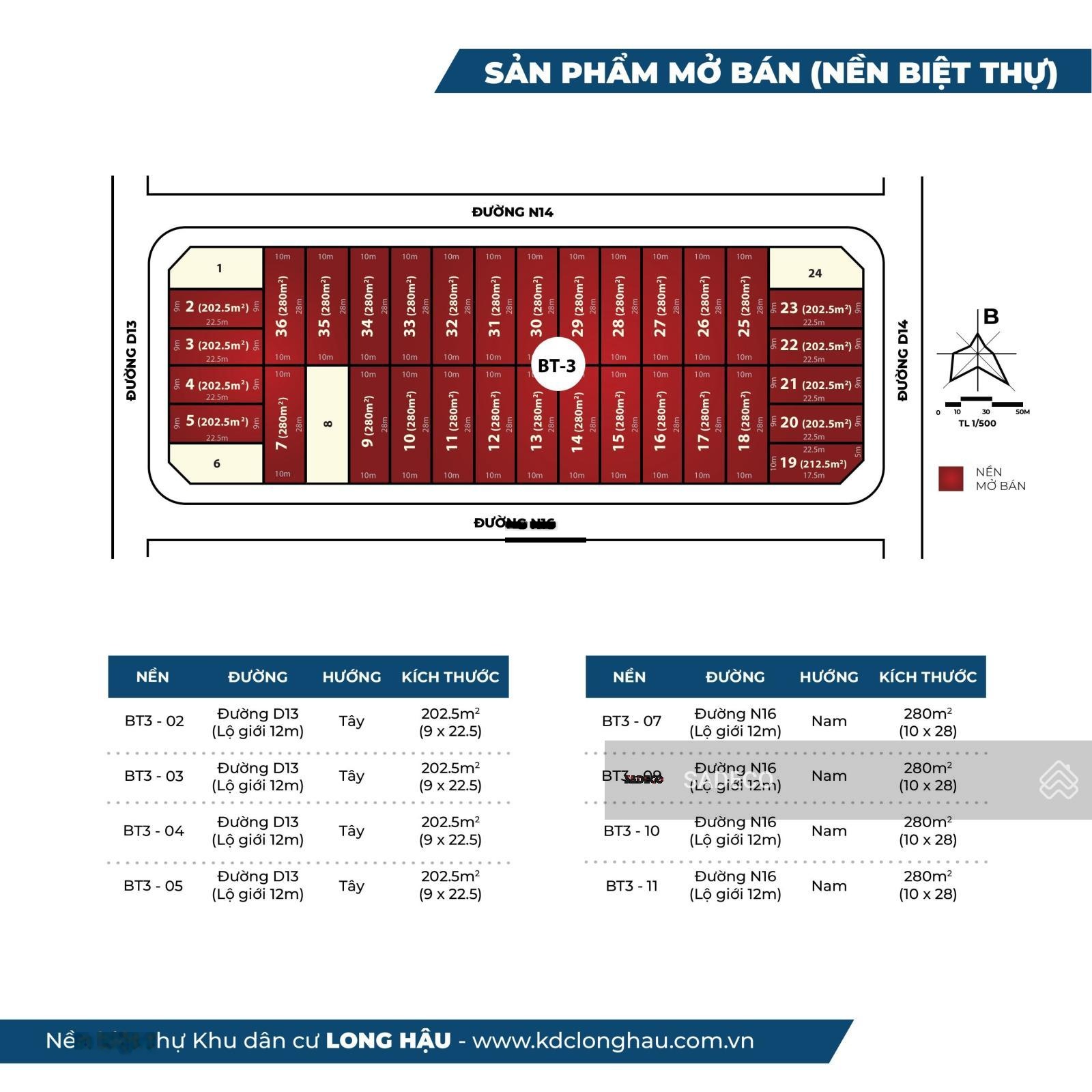 Tìm về một chốn điền viên xanh mát, nơi không gian sống giao hòa cùng thiên nhiên nhưng vẫn đủ đầy tiện nghi và kết nối hoàn hảo? Khu dân cư Long Hậu chính là câu trả lời dành cho bạn với quỹ 32 nền biệt thự độc đáo tại lô BT3 (trải dọc các trục đường D13, D14, N14, N16), mở bán chính thức vào tháng 06/2025.