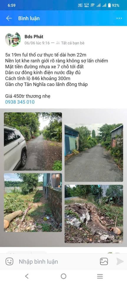 Chủ nhà gửi bán gấp mảnh đất vuông vắn, pháp lý minh bạch tại Đồng Tháp. Mảnh đất có diện tích thực tế hơn 22m, với chiều ngang 5m và chiều dài 19m, toàn bộ là đất thổ cư. Vị trí lọt khe, ranh giới rõ ràng, đảm bảo không lo tranh chấp hay lấn chiếm.
