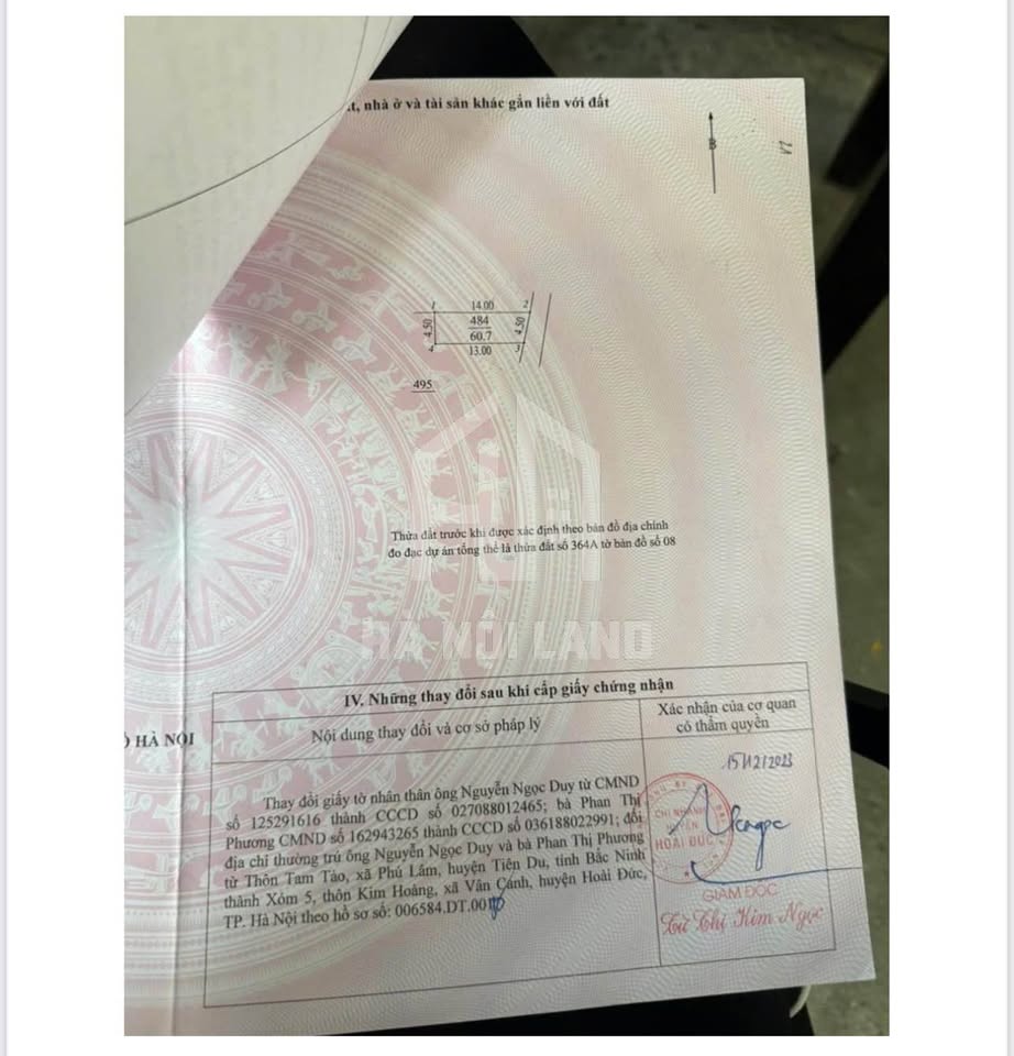 Diện tích 60m², sổ đỏ chính chủ, sẵn sàng giao dịch.