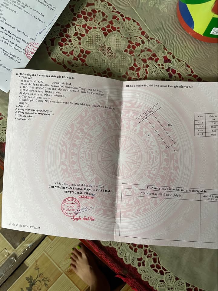 Cần bán miếng đất thổ cư vuông vắn với kích thước 5m x 20m tại khu vực Hòa Lợi.