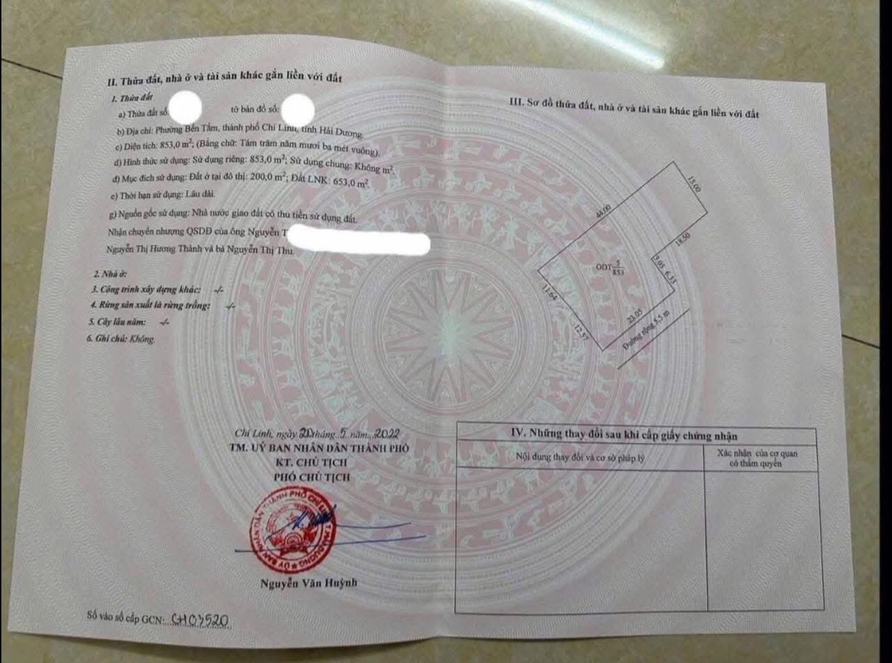 Tổng diện tích lên đến 2800m2, trong đó 853m2 đã được chứng nhận quyền sử dụng đất, cùng 200m2 đất thổ cư.