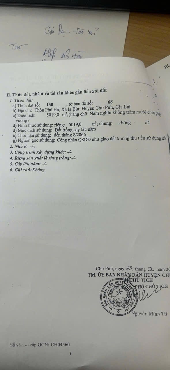 Cơ hội sở hữu ngay 5000m2 đất đỏ sỏi tại thôn Phú Hà, huyện Chư Pưh, tỉnh Gia Lai với mức giá không tưởng chỉ 350 triệu đồng.