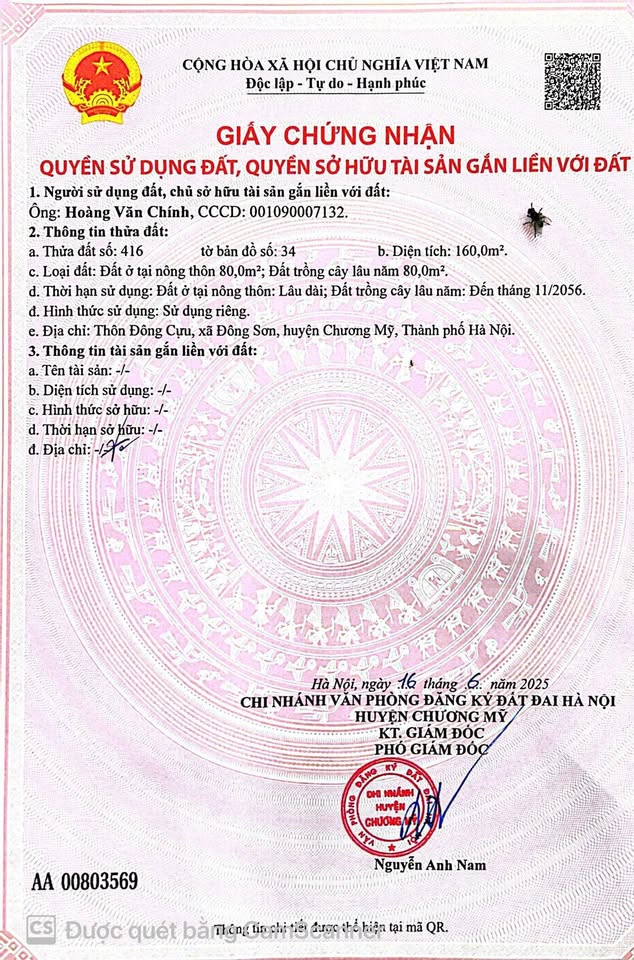 Diện tích đất là 160m2, mở ra không gian lý tưởng để xây dựng tổ ấm hoặc đầu tư sinh lời.
