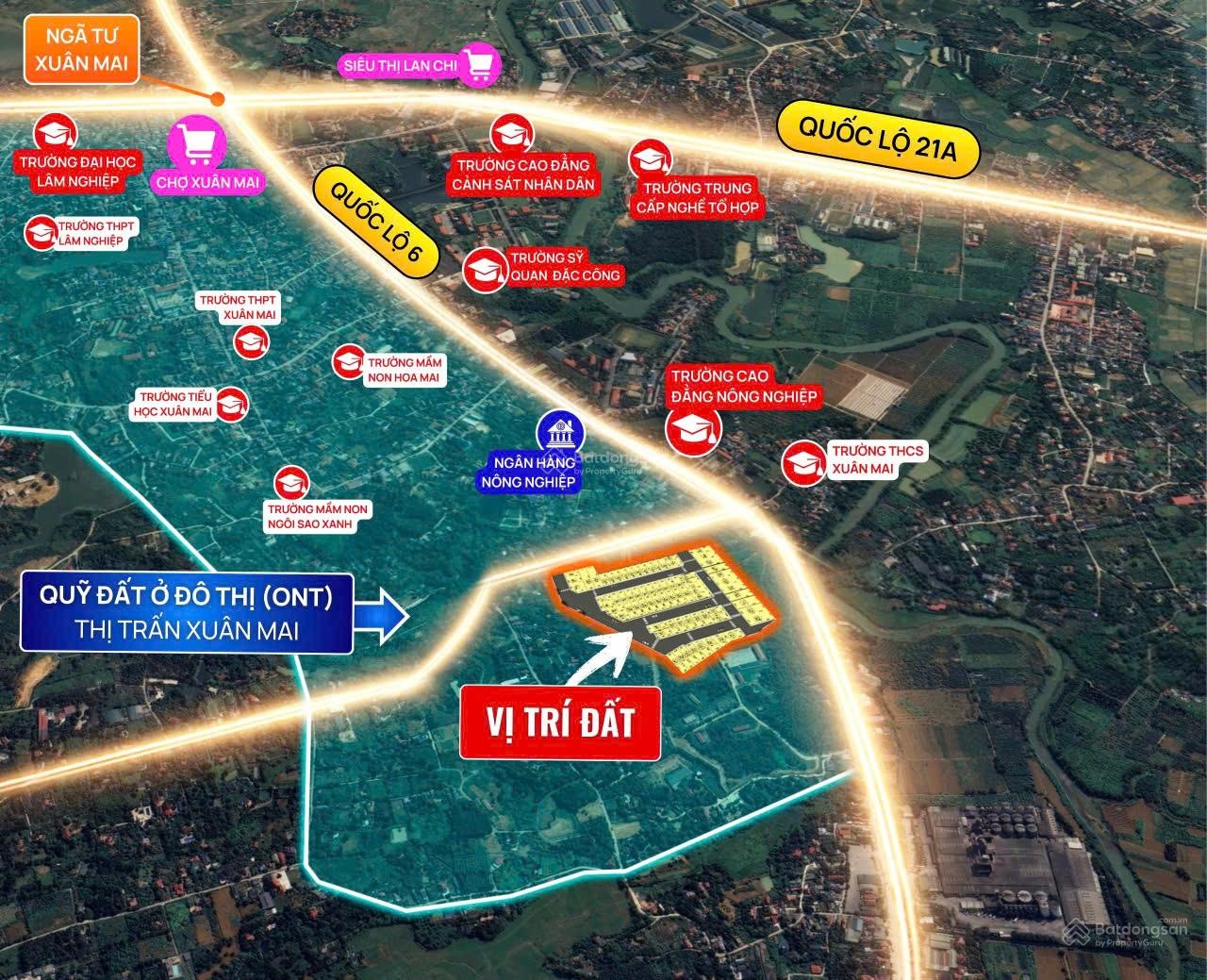 Chỉ từ 27 triệu/m² sở hữu ngay lô đất 50 - 100m² sẵn sổ đỏ, hộ khẩu Hà Nội, ngay trung tâm Xuân Mai. Vị trí: Xuân Mai - Hà Nội - Cửa ngõ phía Tây Hà Nội Kết nối: - 45 phút tới trung tâm Hà Nội. - 2 phút tới Ngã 4 Xuân Mai Tiềm năng tăng giá: - QL 6 mở rộng, tiến độ vô cùng khẩn trương, dự kiến hoàn thiện cuối năm 2026 - Quý IV/2026: Chính thức khởi công vành đai 5 - Khởi công tuyến Metro 2A Cát Linh, Hà Đông, Xuân Mai và Metro 12 Sơn Tây, Hoà Lạc, Xuân Mai. Cơ cấu sản phẩm: diện tích: 50m2 - 55m2 - 100m2 Sổ đỏ từng lô, sở hữu lâu dài - sẵn sàng sang tên.