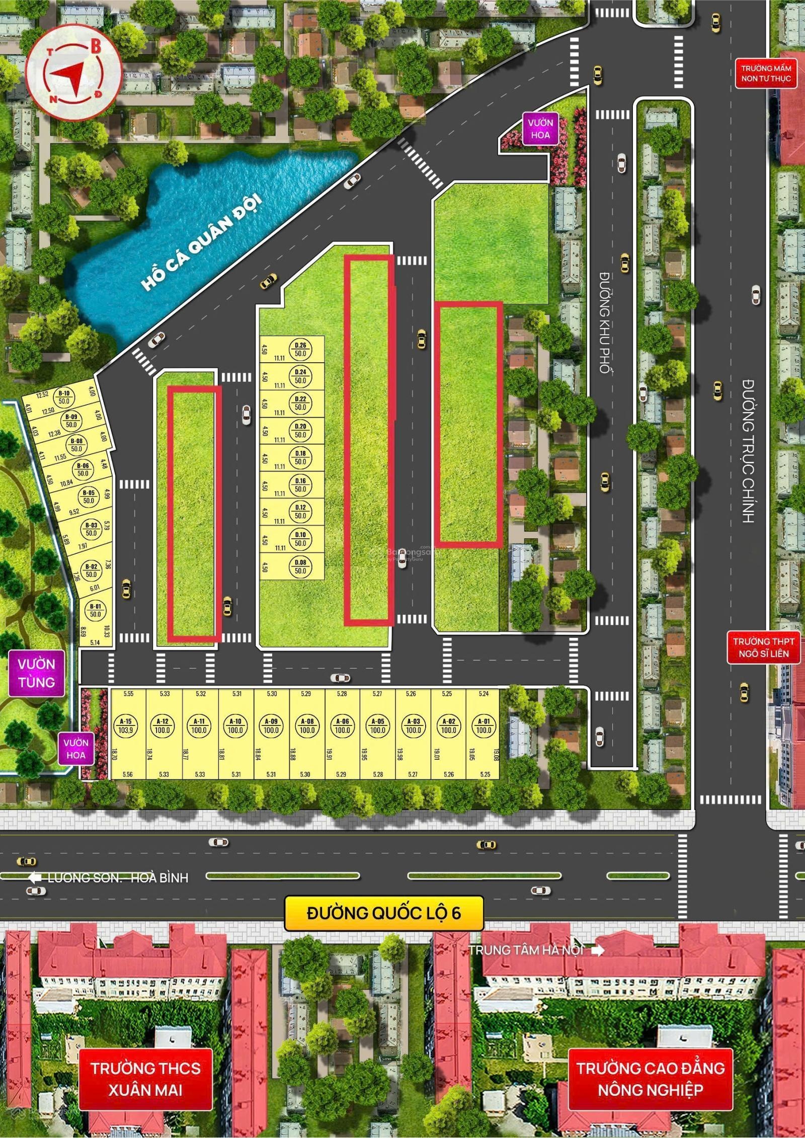 Chỉ 2 tỷ/lô sở hữu ngay lô đất 50m² sẵn sổ đỏ, hộ khẩu Hà Nội, ngay trung tâm Xuân Mai. Vị trí: Xuân Mai - Hà Nội - Cửa ngõ phía Tây Hà Nội. Kết nối: - 45 phút tới trung tâm Hà Nội. - 2 phút tới Ngã 4 Xuân Mai. Tiềm năng tăng giá: - QL 6 mở rộng, tiến độ vô cùng khẩn trương, dự kiến hoàn thiện cuối năm 2026. - Quý IV/2026: Chính thức khởi công vành đai 5. - Khởi công tuyến Metro 2A Cát Linh, Hà Đông, Xuân Mai và Metro 12 Sơn Tây, Hoà Lạc, Xuân Mai. Cơ cấu sản phẩm: Diện tích: 50m2 Sổ đỏ từng lô, sở hữu lâu dài - sẵn sàng sang tên.