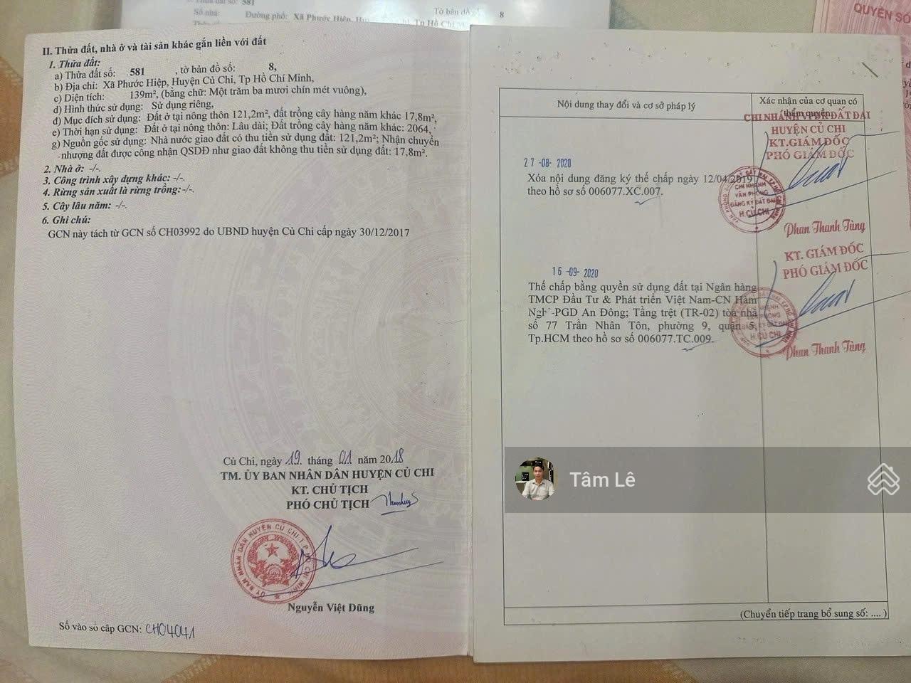 Chủ kẹt tiền bán gấp miếng đất mặt tiền đường Ba Sa xã Phước Hiệp huyện Củ Chi - Vị trí đất cực đẹp, xung quanh dân cư đông đúc, thích hợp cho anh chị mua về xây nhà ở, cách Quốc Lộ 22 chỉ 500m, cách trường học các cấp 500m, cách chợ Phước Hiệp 600m, cách cầu vượt Củ Chi 2km, cách Khu công nghiệp Tây Bắc 2km, cách ngã tư An Sương 25km. - Diện tích đất 6x23,16m ( 139m² thổ cư gần hết ) - Pháp lý chuẩn SHR sang tên công chứng trong ngày luôn - Hỗ trợ vay bank 60% giá trị của đất - Giá chỉ 700tr còn thương lượng cho khách thiện chí Em miễn tiếp cò môi giới Liên hệ ngay 0836287020 gặp em Tâm để được trực tiếp xem đất