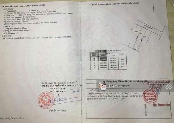 Chủ phá sản kẹt tiền cần thanh lý nhanh lô đất đẹp - Vị trí nằm ở Đường Nguyễn Thị Se - Tân Thông Hội - Củ Chi cách quốc lộ 22 khoảng 400m, cách trường THPT Tân Thông Hội tầm 500m, cách trương trung cấp 400m, xung quanh dân cư đông hiện hữu, đầy đủ các tiện ích cơ bản thích hợp xây dựng ở hoặc kinh doanh buôn bán... - Diện tích: 124m2 (5x25m2) full thổ cư, đường bê tông rộng 6m. - Giá cả hợp lý 900 triệu còn thương lượng thêm - Sổ hồng riêng, sang tên ngay Quan tâm liên hệ 0982613217 Đỗ Diễm