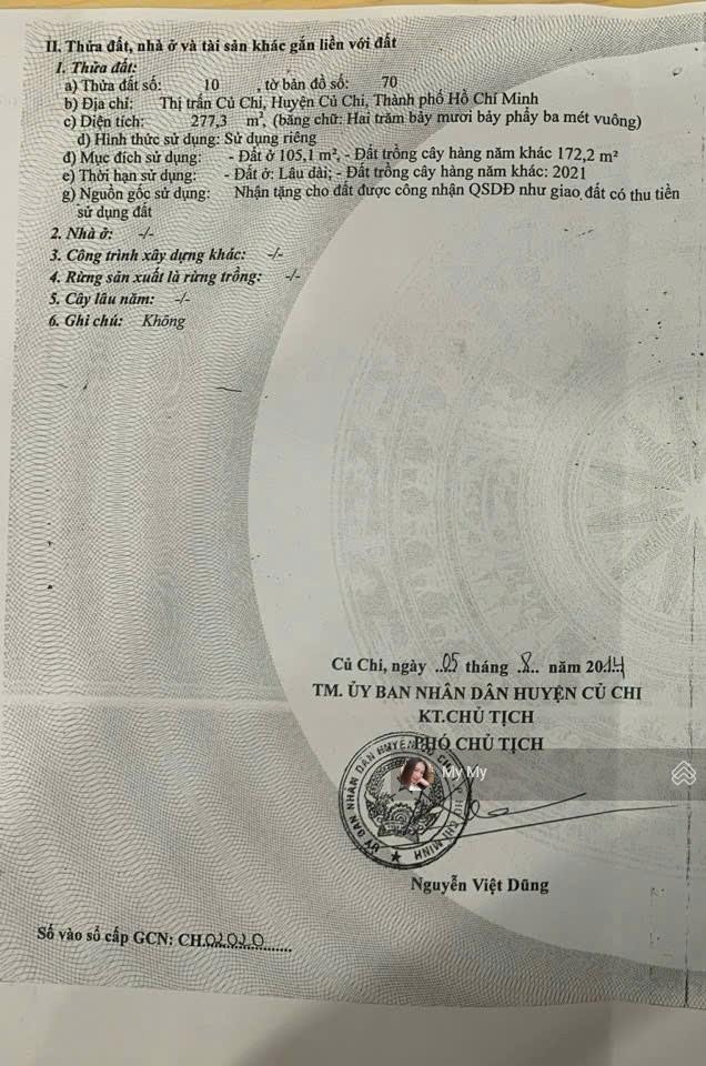 Chủ cần tiền trả n.ợ gấp bán lỗ mảnh đất tại đường Nguyễn Phong Sắc, thị trấn Củ Chi (xã Tân An Hội mới). Diện tích: 6,23m x 37m = 277m², thổ cư 105m², xây dựng tự do. + Mặt tiền đường 12m, thuận lợi cho việc kinh doanh hoặc xây dựng nhà ở. + Dân cư đông đúc, đầy đủ tiện nghi. + Cách QL22 300m, cách bến xe Củ Chi 600m. + Giá 920 triệu. + Pháp lý đầy đủ, SHR. + Ngân hàng hỗ trợ vay 70%. Liên hệ em: 0703844102 để xem đất.