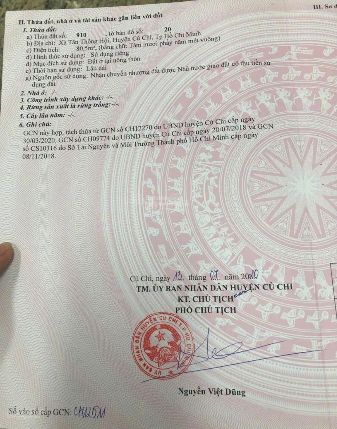 Chủ nhà cần vốn làm ăn nên cần bán lỗ lô đất nằm ngay khu vực Chợ Việt Kiều, Tân Thông Hội. Đất đường Liêu Bình Hương, Tân Thông Hội, Củ Chi. Cạnh chợ cách chợ chỉ vài bước chân đi bộ Diện tích 80m2 ( 5x16 ) vuông vức, full thổ cư Sổ hồng riêng Gía : 630 triệu Đường nhựa trươc nhà 7m, cách QL22 đi vào 200m, dân cư đông, thuận tiện cho khách mua về ở hoặc kinh doanh nhỏ lẻ ,..... Vị trí đất siêu đẹp ALO THÚY : 0388503423