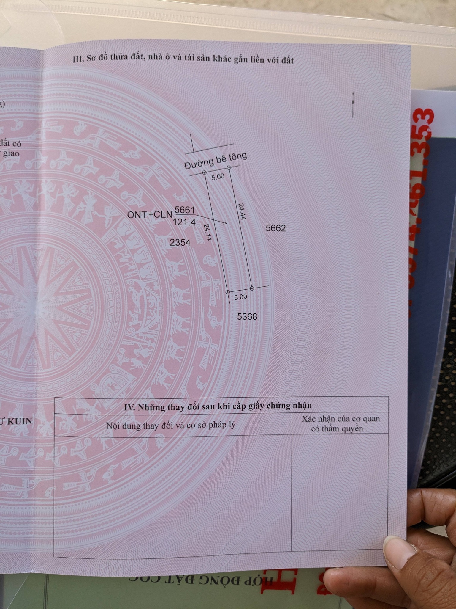 Lô đất có diện tích 5m x 24m, với 60m² thổ cư đã có sổ hồng chính chủ, sẵn sàng giao dịch.