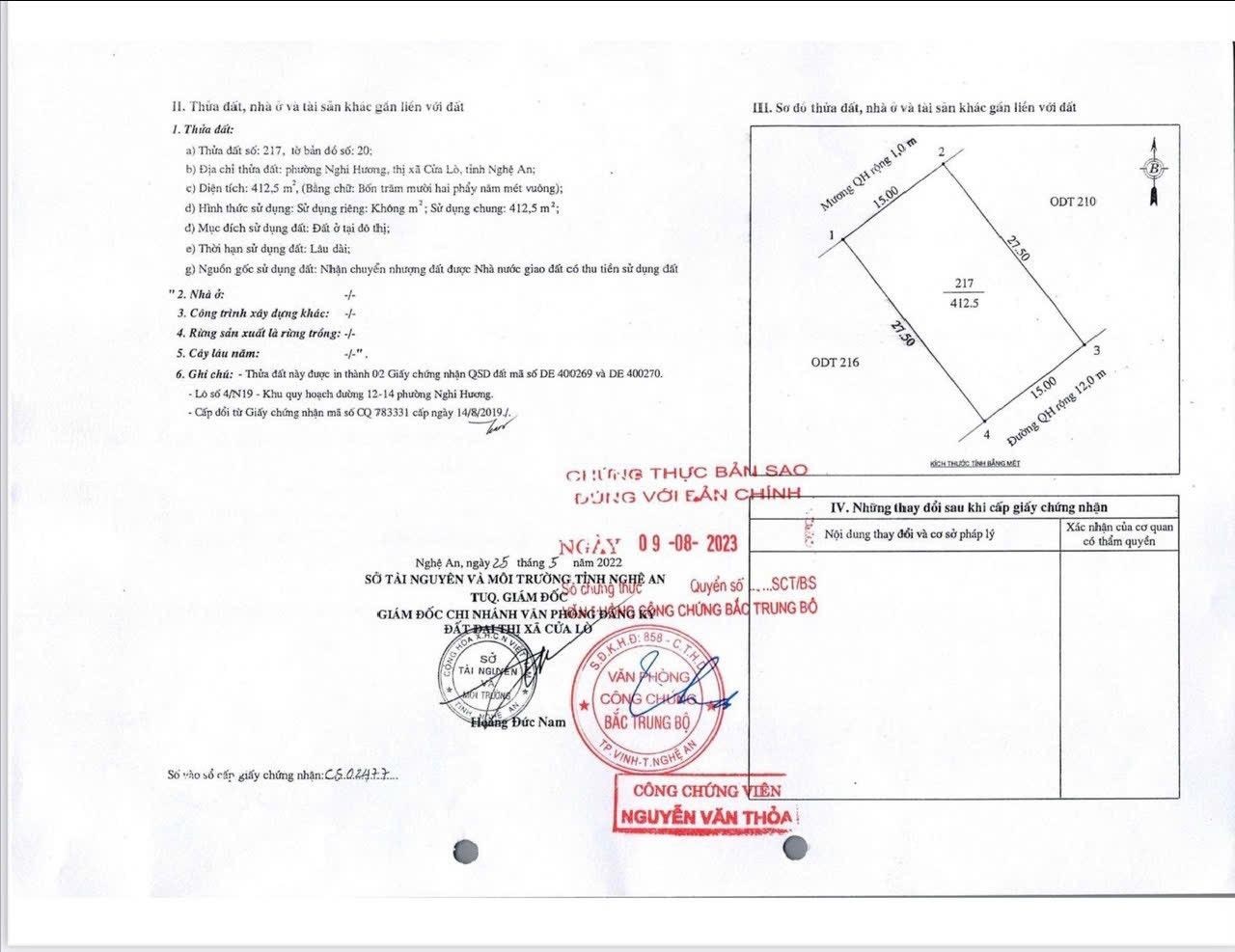 Bán lô 412,5 m2 đất đẹp Cửa Lò giá chỉ 8 tỷ