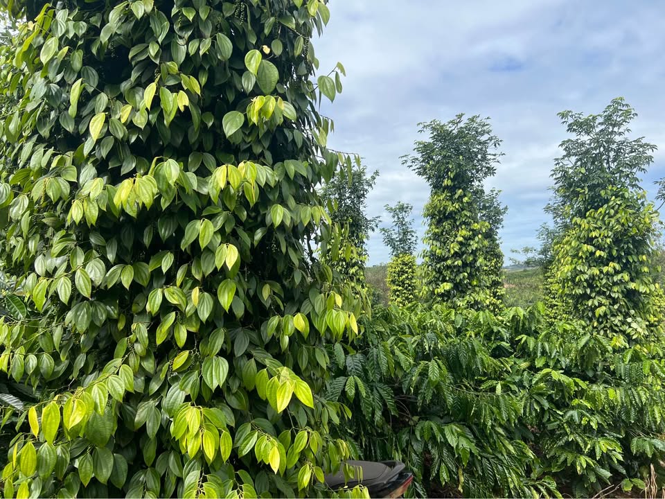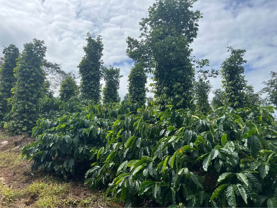 Nơi đây, những cây cà phê xen lẫn tiêu xanh mướt trải dài, mang đến một khung cảnh yên bình và đầy sức sống. Địa hình bằng phẳng, không thiếu nước tưới tiêu nhờ có ao hồ, chỉ còn chờ bàn tay chăm sóc và sự đầu tư để phát triển.