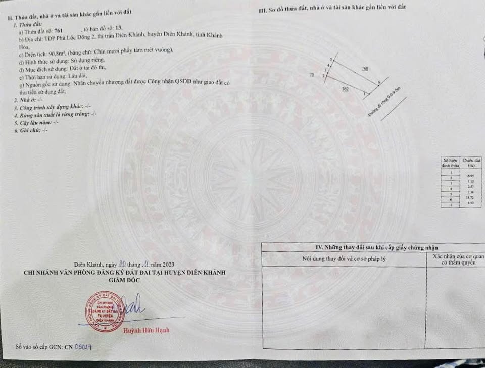 Bán đất vườn Diên Khánh, diện tích 468m2, ngang 12m, giá 1.8 tỷ