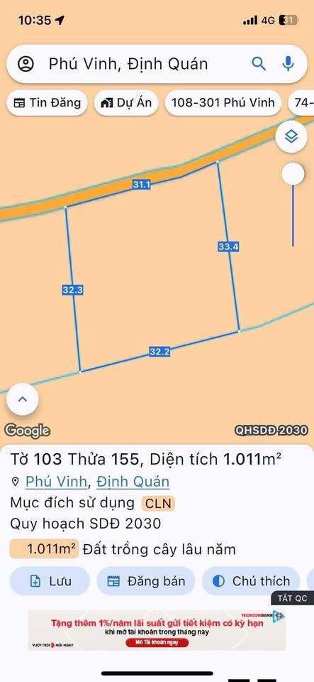 Đất thổ cư xã Phú Vinh, Định Quán, Đồng Nai, diện tích 6m x 26m, giá 390 triệu