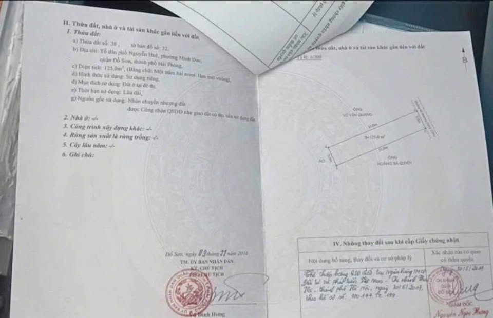 Nơi an cư lý tưởng, chốn đầu tư sinh lời! Lô đất diện tích 125m2, mặt tiền 5m, tọa lạc trên đường Nguyễn Huệ, phường Minh Đức, quận Đồ Sơn, Hải Phòng, hứa hẹn mang đến cuộc sống thịnh vượng và cơ hội kinh doanh đắt giá.