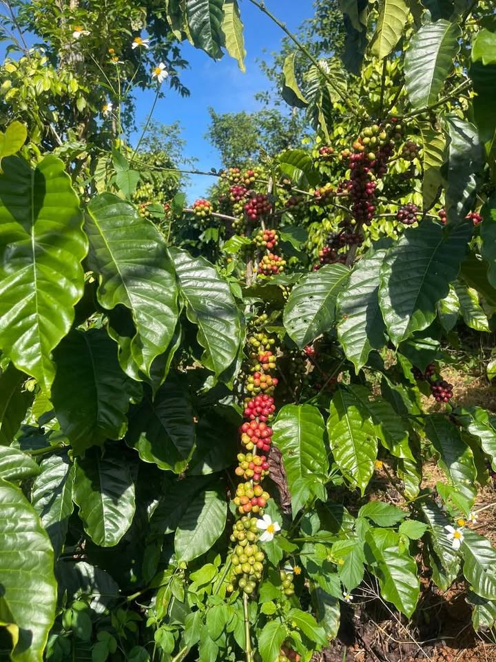 Với 900 cây cà phê đang cho thu hoạch chính, mỗi năm "về tay" 2 tấn quả mọng, cùng 300 trụ tiêu "bạc tỉ" cho ra 5 tạ hạt thơm lừng, đảm bảo "hái ra tiền" đều đặn.