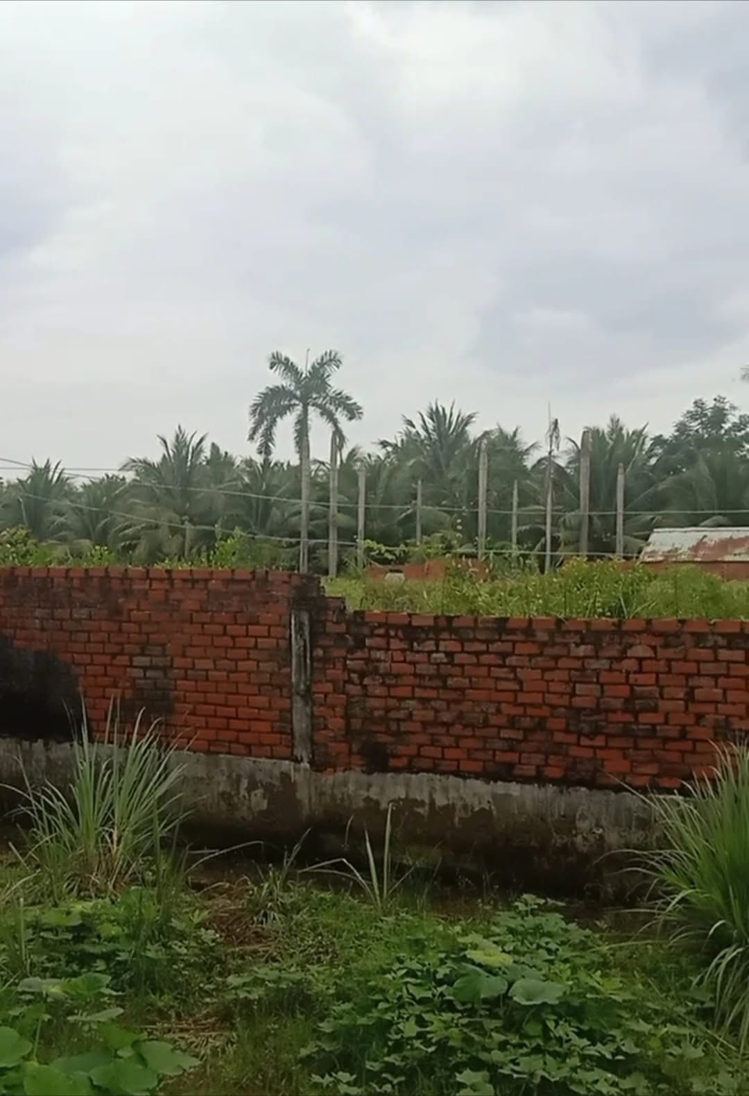 Bao quanh là tường rào xây kiên cố và những hàng cau xanh mướt đã bao năm vun trồng, tạo nên một không gian yên bình, đậm chất thôn quê.