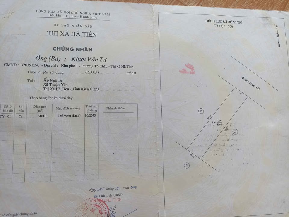 Đất nền 589m2 mặt tiền 6m, sổ đỏ sẵn sàng giao dịch tại Hà Tiên