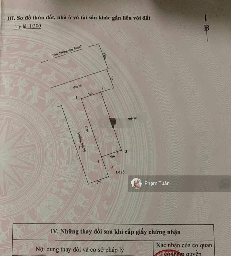 D.tích: 75m (ngang 5 x 15) - Hướng: Tây Bắc