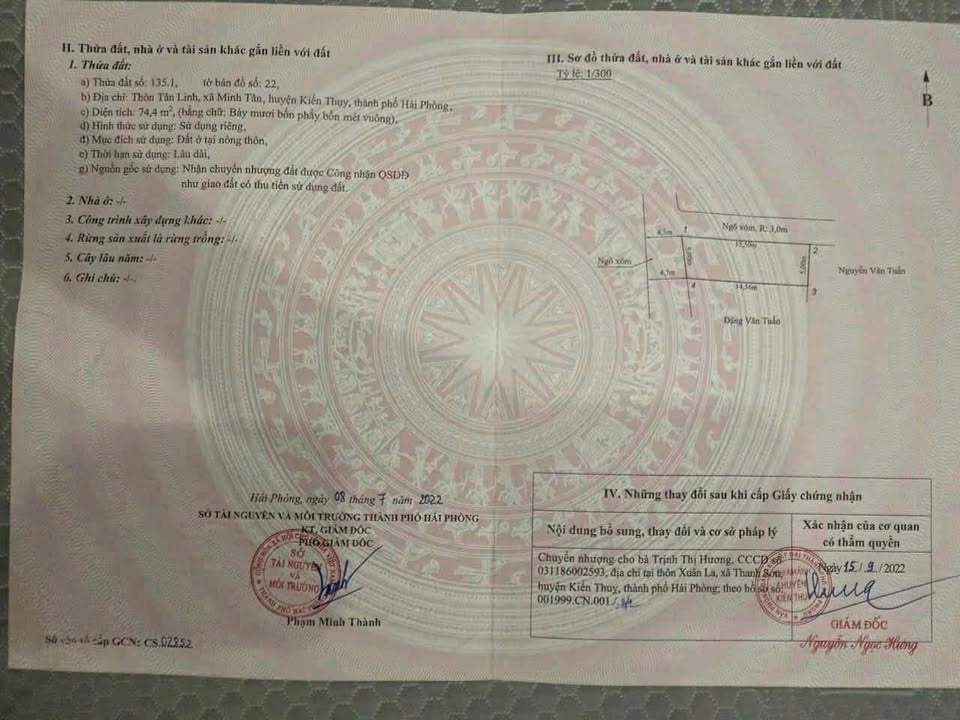 Bán đất 76m2 tại Tam Kiệt, Hữu Bằng, Kiến Thụy, Hải Phòng, ngõ 4m ô tô vào